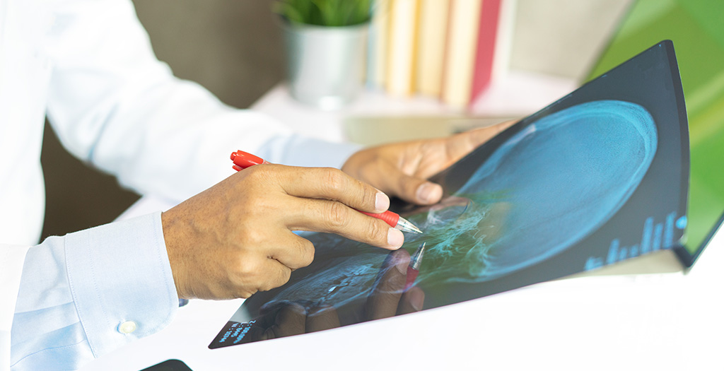 radiology doctor examining at chest x ray film of patient at hospital